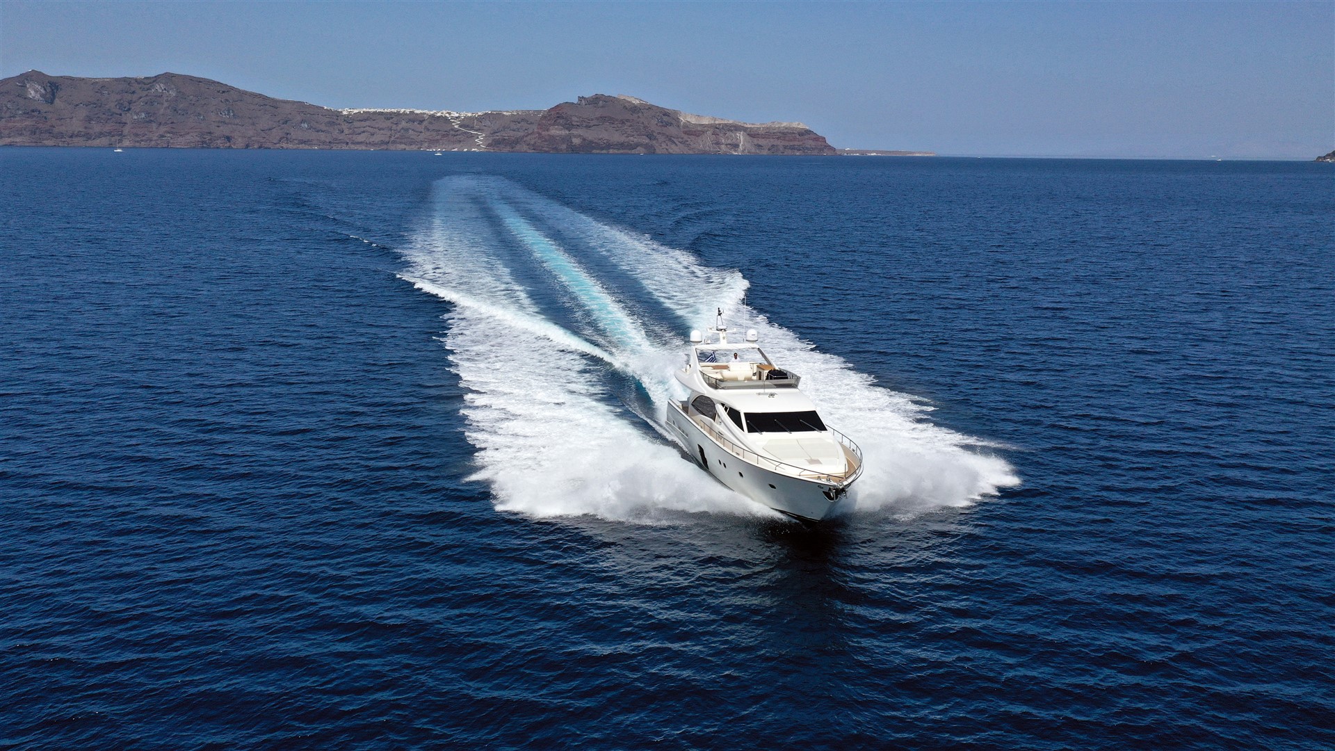 With an experienced captain, a stewardess chef and a sailor offered to cater to every need and desire, Alexandros motor yacht Greece consists of a lower and an upper level deck, both fitted with high-end amenities, so as to ensure a thrilling yachting adventure in Santorini Island.