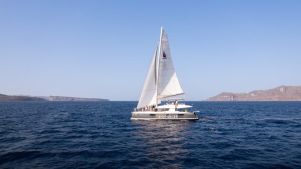 Les grands atouts du tour Coucher du soleil : Moments de farniente avec vue sur le fameux coucher du soleil de Santorin, par l’endroit le plus privilégié. Passez les moments inoubliables, à bord, en pleine mer, entourés des couleurs extraordinaires.