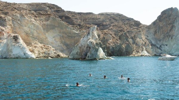 * En Grèce, il est interdit d’accoster et d’amarrer directement sur la plage. Sunset Oia a sélectionné les meilleurs endroits pour baignade et snorkeling, les plus proches possible des plages.