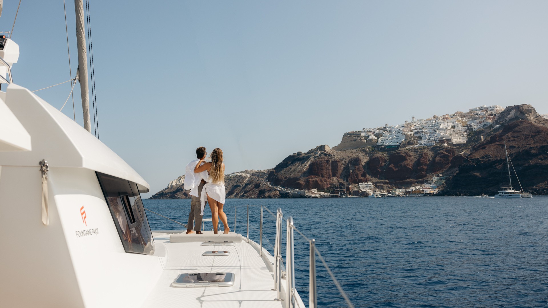 Experience the epitome of luxury as you witness the world-renowned Santorini sunset from the best vantage point, ending your day surrounded by a symphony of colors painting the sky.