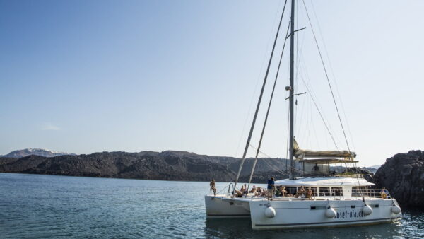 Indulge in a deluxe half-day private cruise aboard the largest and most luxurious catamarans in Santorini -an exceptional experience designed for families, couples, or groups of friends seeking space, comfort, and exclusivity. These flagship catamarans combine impressive size with refined elegance, outstanding stability, and smooth sailing performance.